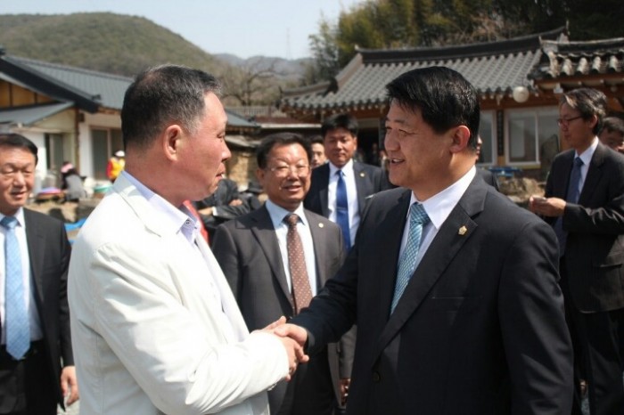 경산의 자랑 경산 남천 송백리 발해 황제대조영 영정과위패가모셔져있는곳 이곳에서 우리 경산고선배님 시의장으로계시는 이천수의장님 현종국산림조합장.부시장 경산시의원 도의원 면장님 관계기관 여러장님과 전국의종친들과 함께 춘분대제를 올리다
